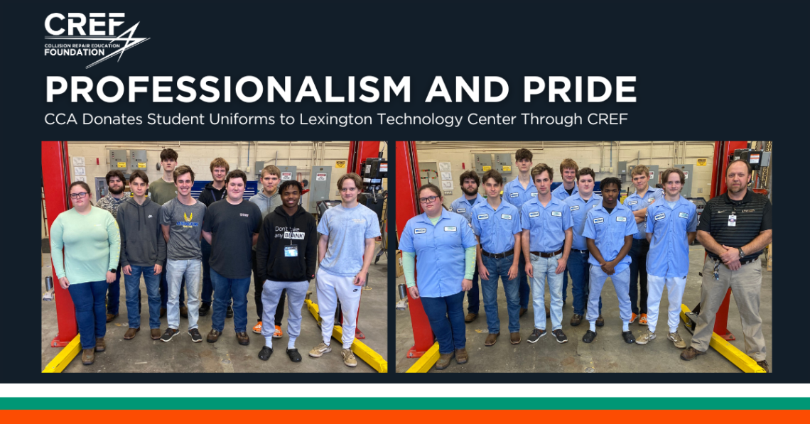 Created for Collision Repair Education Foundation “Dress for success.” This is a common expression with multiple implications – others may gauge someone’s professionalism based on their appearance, but more importantly, donning the right apparel can affect how we feel about ourselves and give us a sense of pride, a consideration that is especially true for future collision repair students who often receive mixed messages about their future career paths. The 28 students enrolled in the auto collision repair program at the Lexington Technology Center (Lexington, SC) can now hold their heads high as they proudly sport official technician shirts, sponsored by the Carolinas Collision Association (CCA), in collaboration with the…