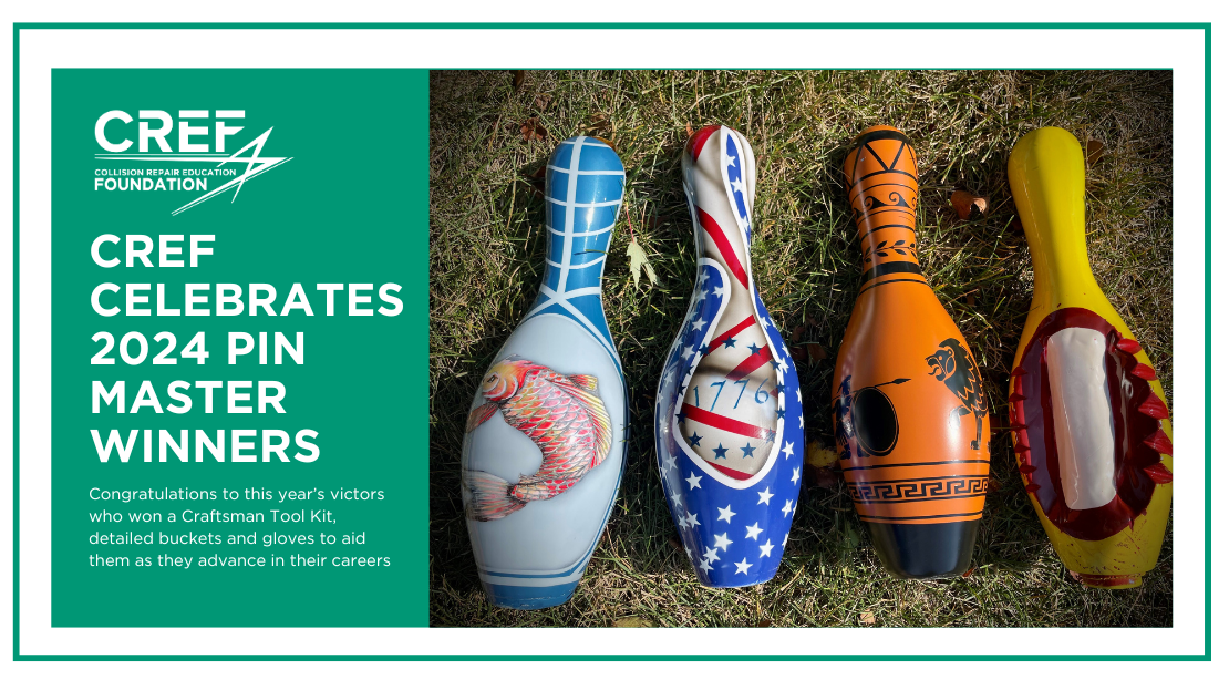 “The 2024 PiN Master Challenge was a huge success which allowed collision students to demonstrate their skills – and showcase their talents – by designing and creating the best restored and painted bowling pin,” explained Tiffany Bulak, CREF Program Manager. “It’s vital that we take advantage of all possible opportunities to generate excitement around this industry and its viability as a career option for students to consider by spotlighting both the industry and the students studying collision repair in high school or college.”