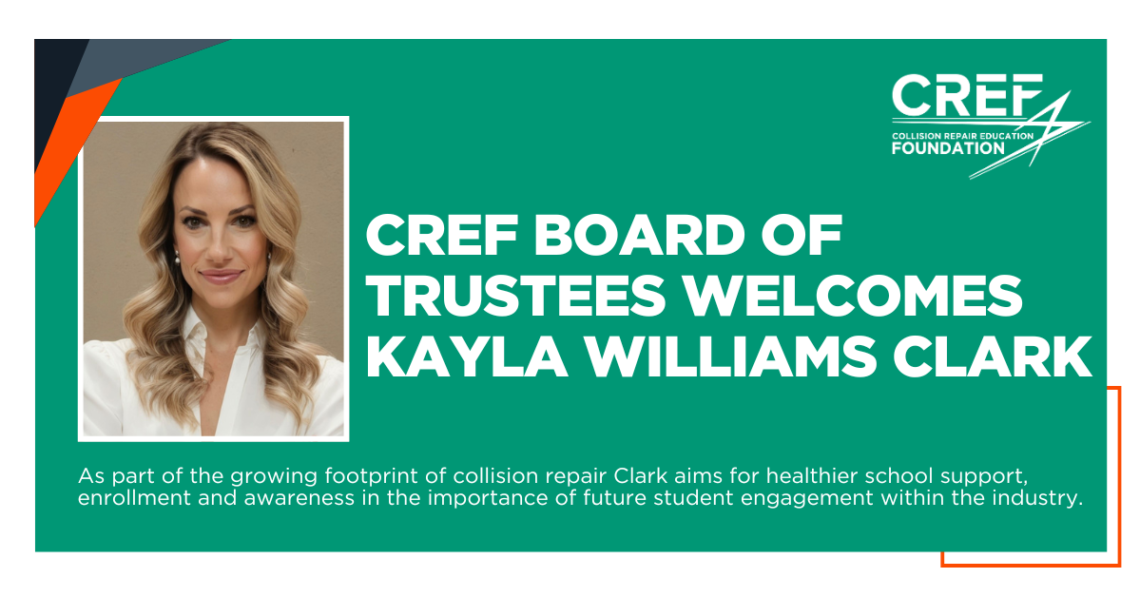 The Collision Repair Education Foundation (CREF) is excited to welcome Kayla Williams Clark, Vice President of Business Development for Classic Collision, to its Board of Trustees.