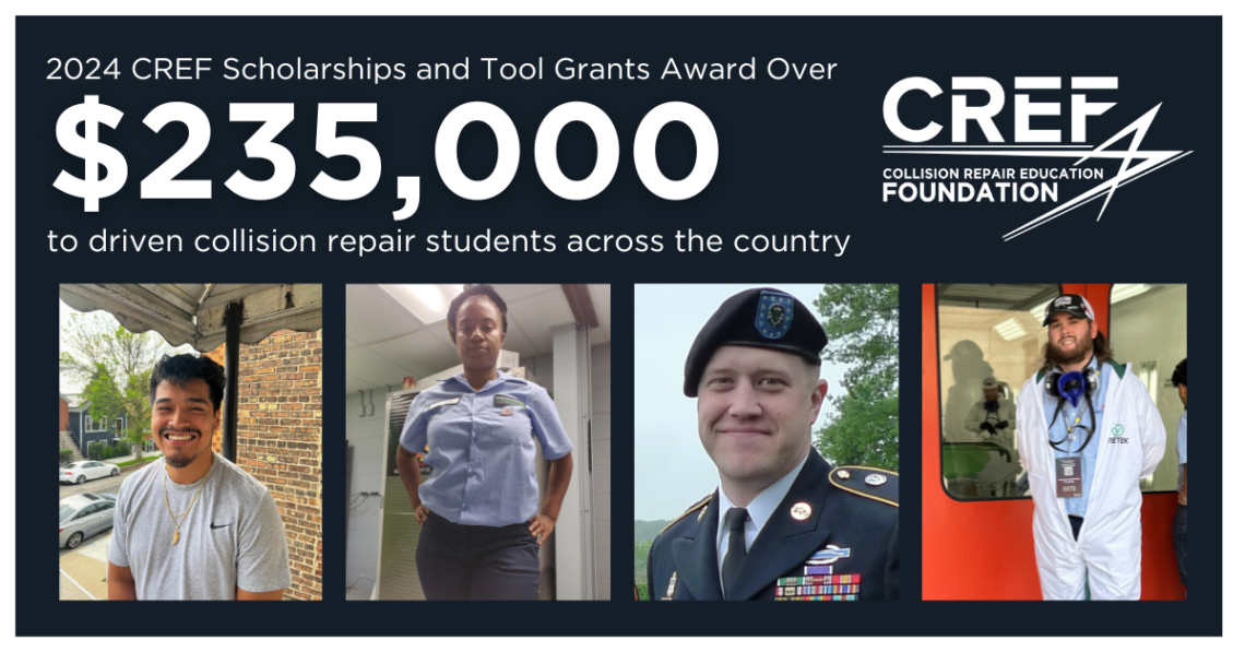 “CREF is honored to recognize these outstanding students through the 2024 scholarships and tool grants, which were funded thanks to the generosity of our many industry partners,” said Melissa Marscin, Director of Operations and Administration for CREF. “We were thrilled to receive applications from a greater diversity of students than we’ve ever seen in the past, all of whom have demonstrated their commitment to pursuing their educations and becoming part of the collision industry. We hope these awards help contribute to their successful careers, strengthening the industry by bringing in new perspectives.”